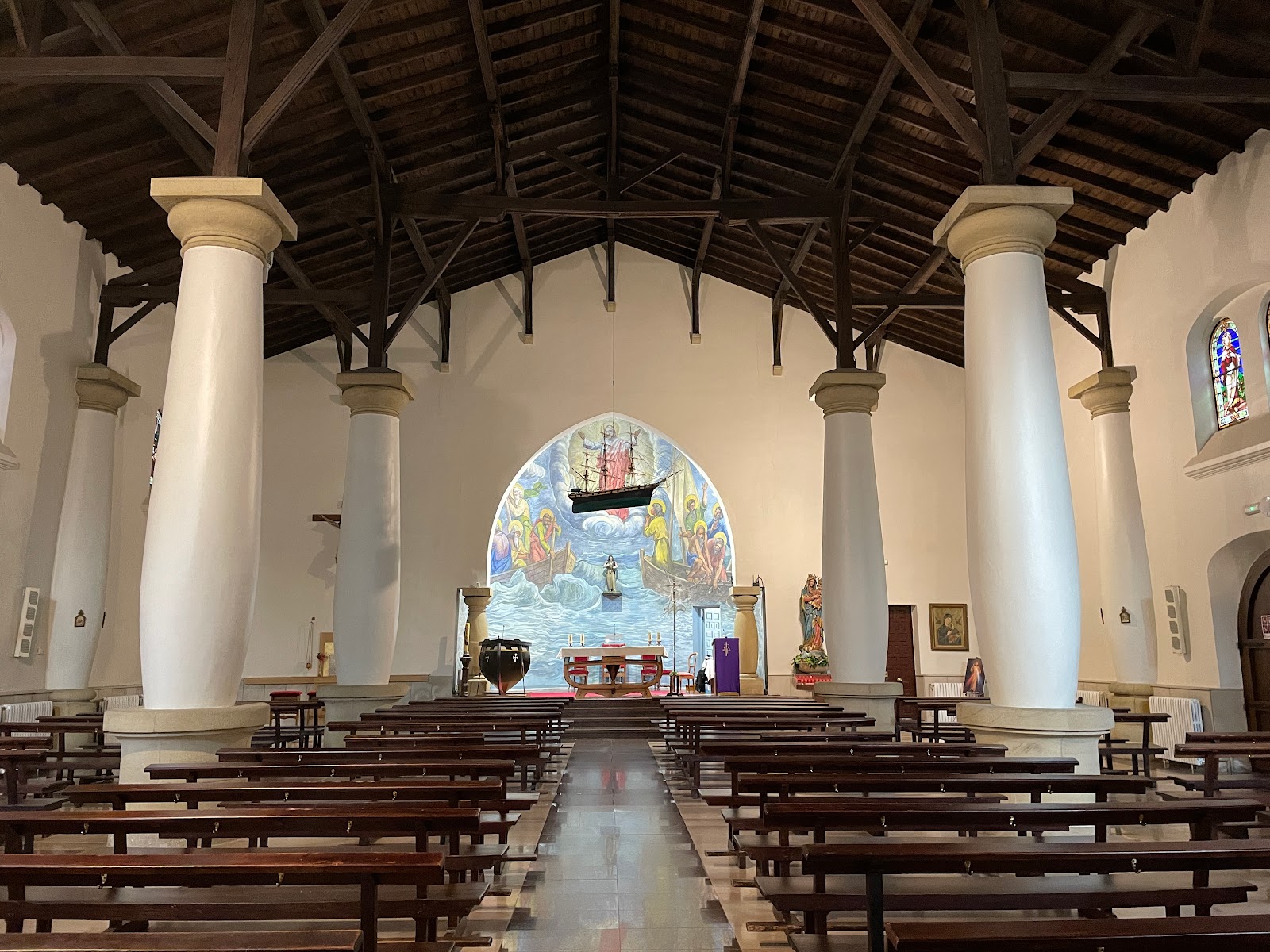Lo que sí hemos podido visitar es la iglesia parroquial de San Nicolás de Bari, del siglo XVI, que se encuentra en el casco histórico. Está dedicada al santo patrón de los pescadores y los viajeros. Lo más llamativo es el atrio que, a modo de pasarela, rodea el edificio. Muy curioso. En el interior se puede ver un gran barco de madera que cuelga en el centro del templo.